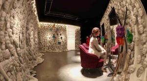 A Distração Cidadã: O primeiro ambiente é uma imersão em um cenário caótico com lixo, barulho e poluição visual (que Jung dizia ser uma forma de fugirmos do inconsciente). Nele, um boneco representa um morador de rua! A cidade e seus estímulos funcionam como objetos de distração que nos impedem de olhar para dentro.